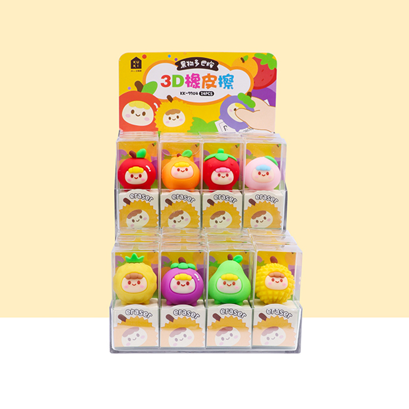 Seri 3D Erasers KUKI menghadirkan penghapus koleksi dalam berbagai bentuk, seperti hewan, buah-buahan, dan barang sehari-hari. Terbuat dari bahan PVC ramah lingkungan, penghapus ini dirancang untuk daya tahan dan fungsionalitas. Setiap bagian berfungsi sebagai penghapus praktis dan barang dekoratif, menarik bagi kolektor dan mereka yang mencari alat tulis unik. Ukurannya yang ringkas dan desainnya yang detail menjadikannya ideal untuk penggunaan pribadi atau sebagai hadiah yang bijaksana.