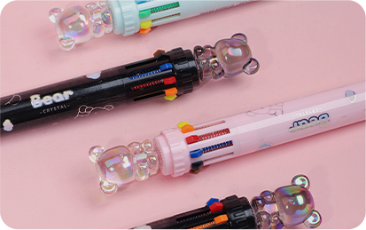 Pena Gel Bergaya KUKI menggunakan isi ulang tinta gel 0,5 mm yang menghadirkan garis hitam tajam dan andal, dilengkapi dengan lapisan PVC atau ABS cetakan tetes dalam bentuk menawan atau abstrak. Pena ini diproduksi menggunakan teknologi pencetakan dan penyemprotan presisi tinggi, memastikan detail dan nuansa yang konsisten. Logo, kemasan, dan citra khusus tersedia untuk pesanan, menjadikan lini ini ideal untuk hadiah perusahaan, barang dagangan bermerek, atau bermacam-macam alat tulis premium. Dengan kinerja penulisan yang halus dan identitas visual yang kuat, Styled Gel Pens menawarkan fungsionalitas dan keterlibatan emosional.