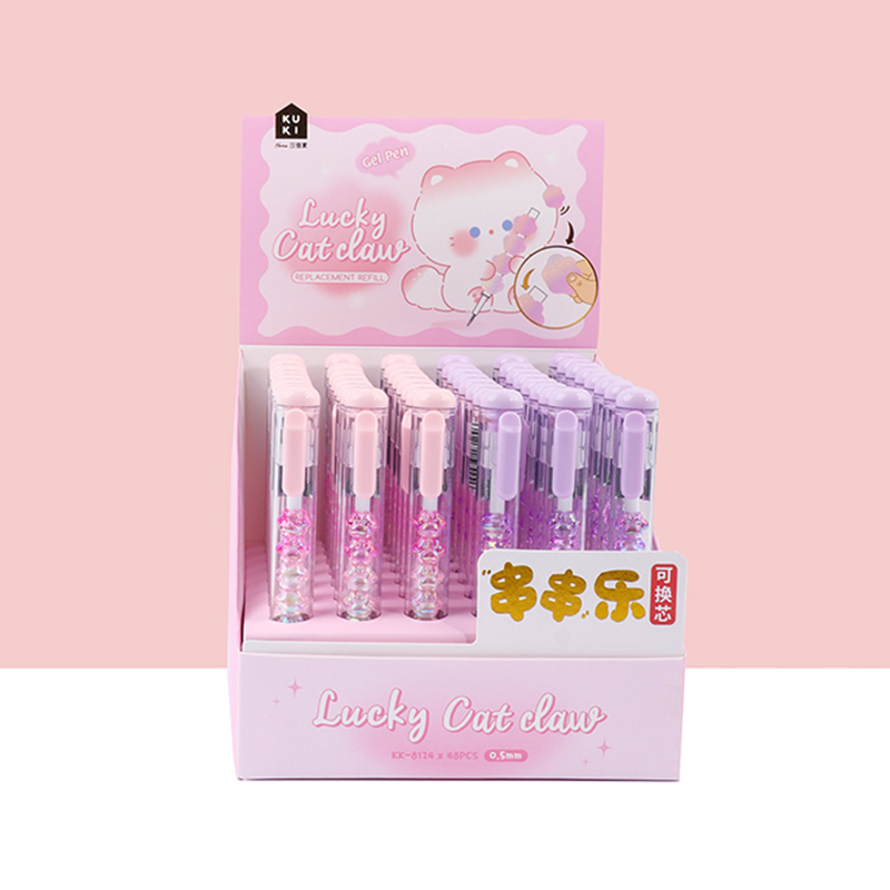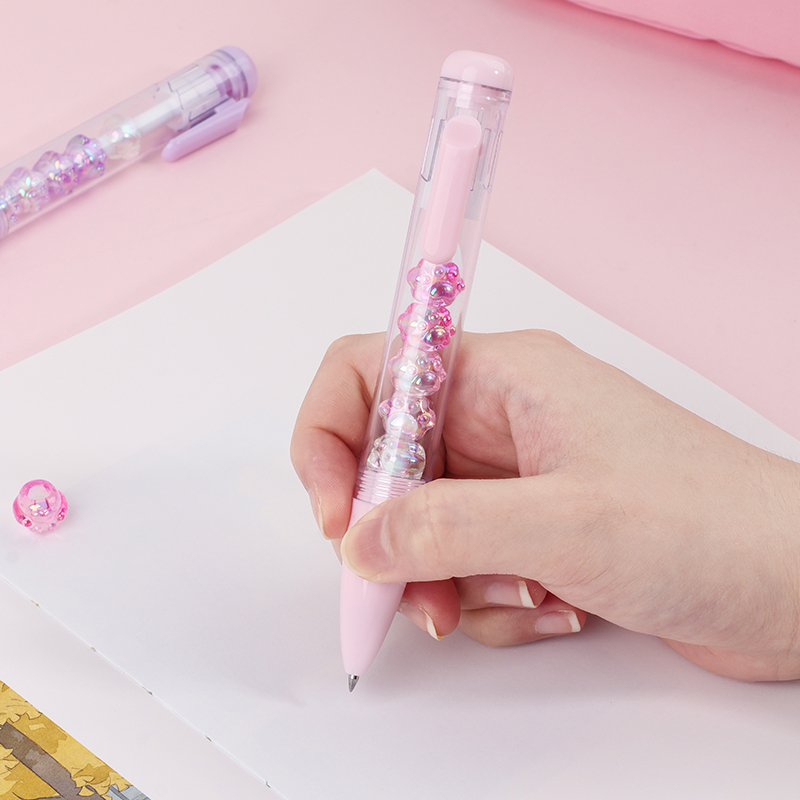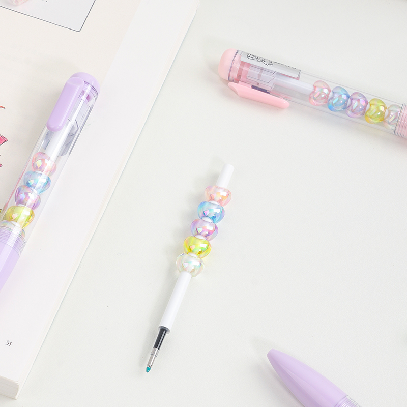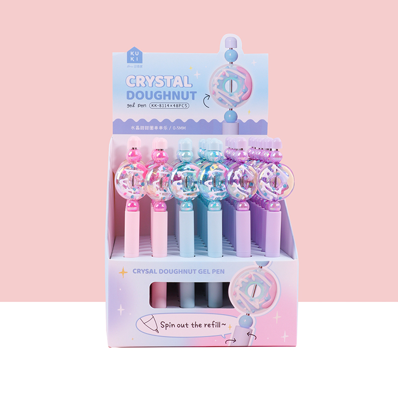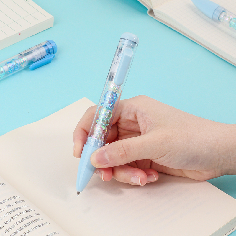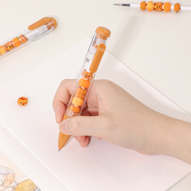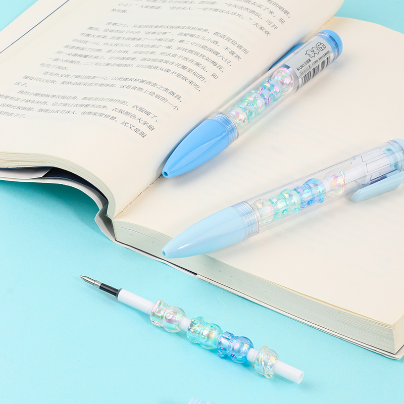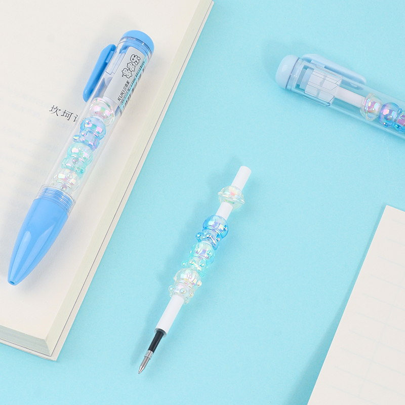 Bead String Pen mengintegrasikan inti tinta gel standar 0,5 mm dengan laras transparan yang dikelilingi oleh elemen manik cetakan tetes yang dapat disesuaikan. Manik-manik dekoratif ini, dibuat dari PVC atau silikon, memungkinkan pengguna akhir mempersonalisasi pena mereka dengan menukar atau menata ulang motif. KUKI memastikan kejernihan dan penyelesaian yang seragam di seluruh bagian, dengan kapasitas bulanan puluhan ribu unit. Hal ini membuat lini ini menarik untuk co-branding, merchandising interaktif, atau perluasan produk khusus yang memprioritaskan kualitas penulisan dan penyesuaian yang menyenangkan.