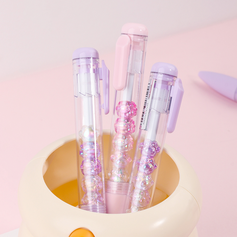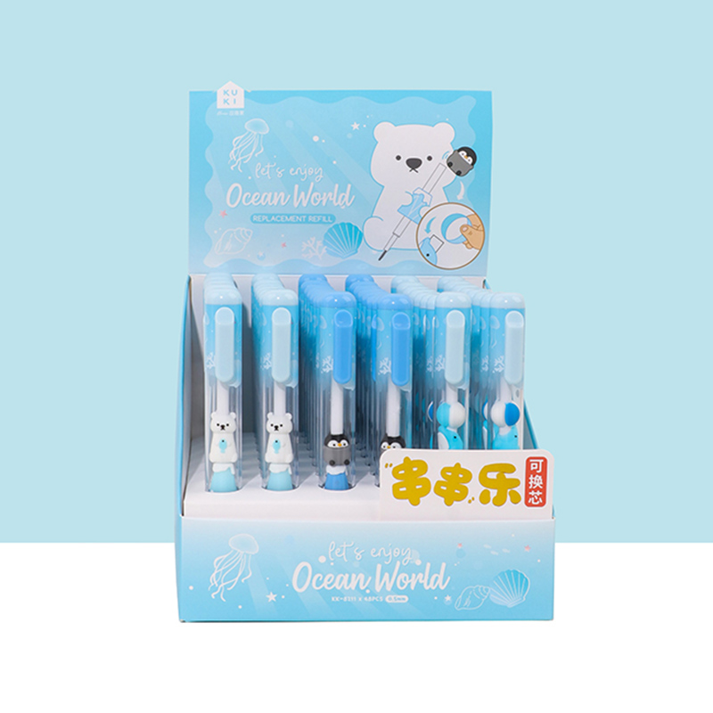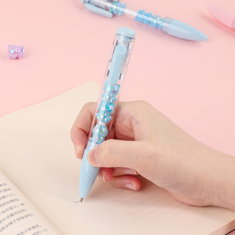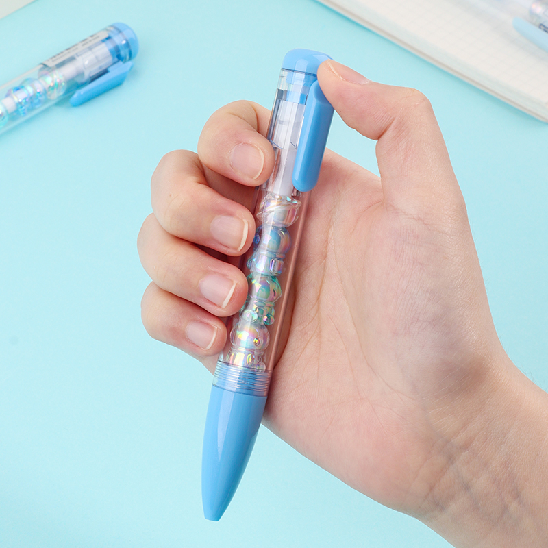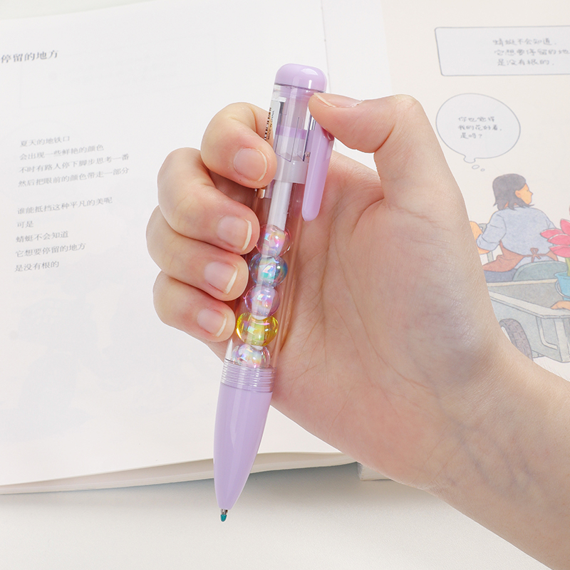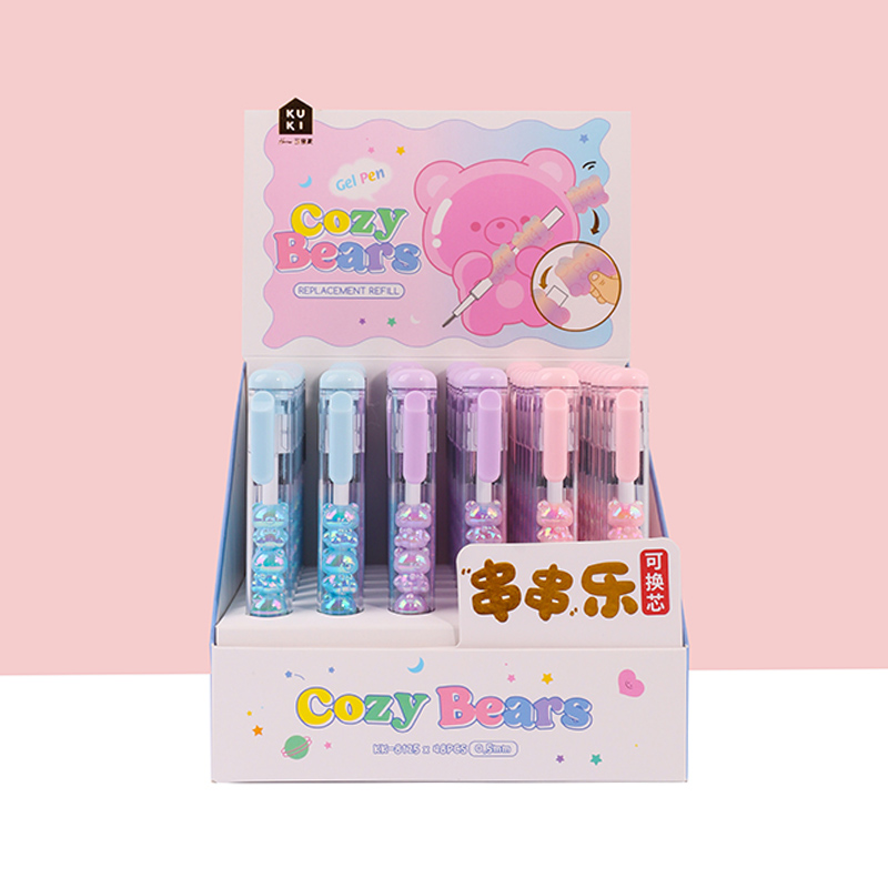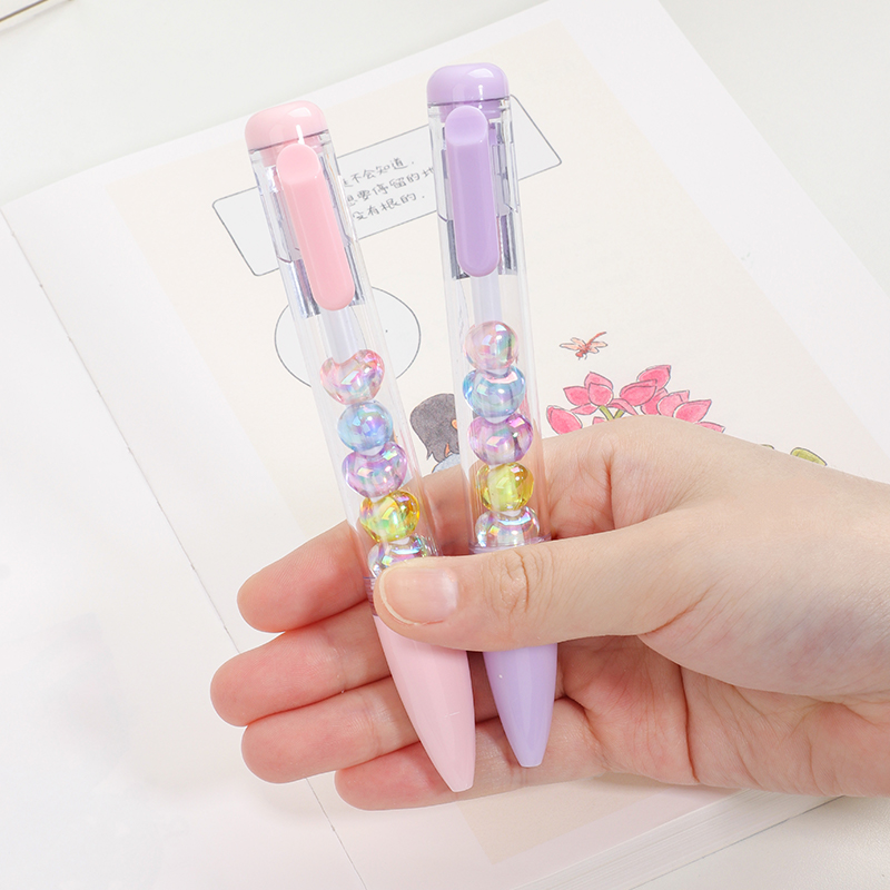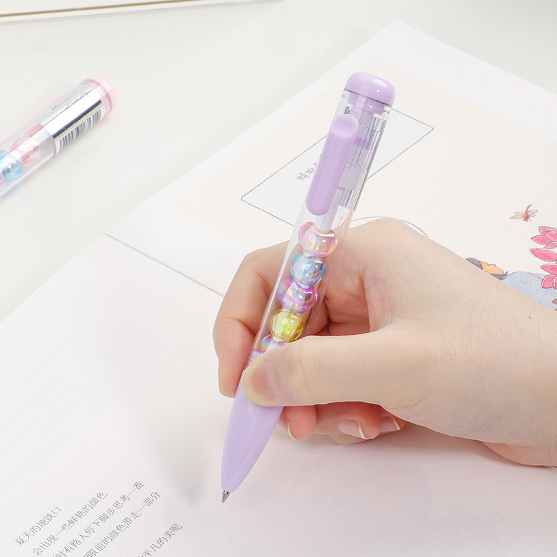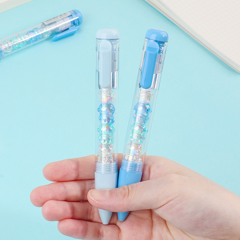 Bead String Pen mengintegrasikan inti tinta gel standar 0,5 mm dengan laras transparan yang dikelilingi oleh elemen manik cetakan tetes yang dapat disesuaikan. Manik-manik dekoratif ini, dibuat dari PVC atau silikon, memungkinkan pengguna akhir mempersonalisasi pena mereka dengan menukar atau menata ulang motif. KUKI memastikan kejernihan dan penyelesaian yang seragam di seluruh bagian, dengan kapasitas bulanan puluhan ribu unit. Hal ini membuat lini ini menarik untuk co-branding, merchandising interaktif, atau perluasan produk khusus yang memprioritaskan kualitas penulisan dan penyesuaian yang menyenangkan.