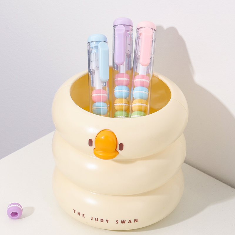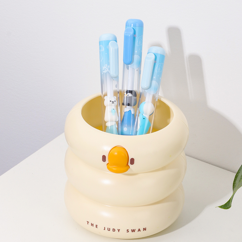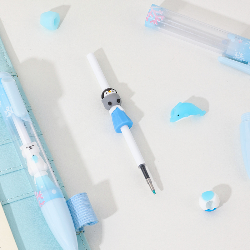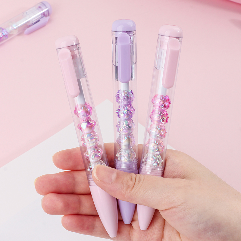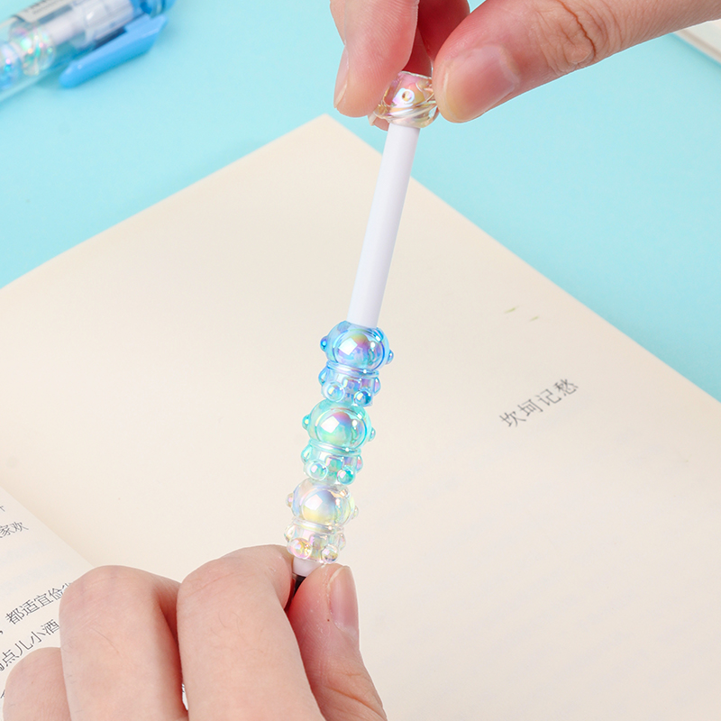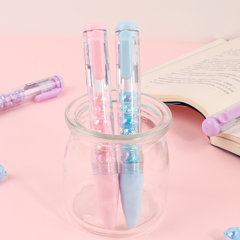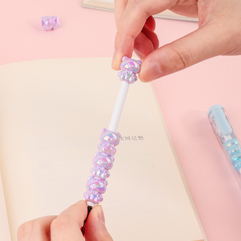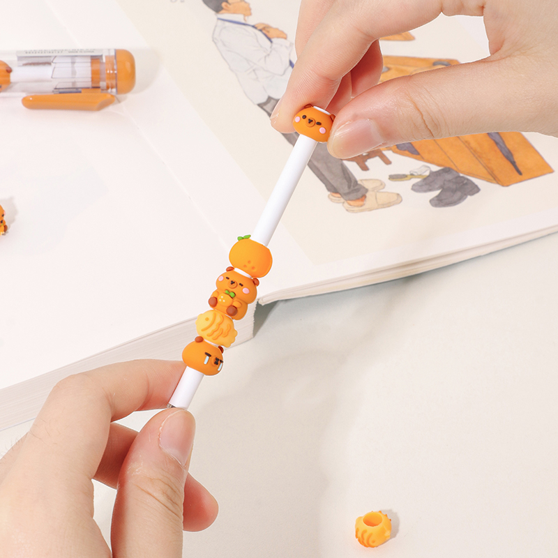 Bead String Pen mengintegrasikan inti tinta gel standar 0,5 mm dengan laras transparan yang dikelilingi oleh elemen manik cetakan tetes yang dapat disesuaikan. Manik-manik dekoratif ini, dibuat dari PVC atau silikon, memungkinkan pengguna akhir mempersonalisasi pena mereka dengan menukar atau menata ulang motif. KUKI memastikan kejernihan dan penyelesaian yang seragam di seluruh bagian, dengan kapasitas bulanan puluhan ribu unit. Hal ini membuat lini ini menarik untuk co-branding, merchandising interaktif, atau perluasan produk khusus yang memprioritaskan kualitas penulisan dan penyesuaian yang menyenangkan.