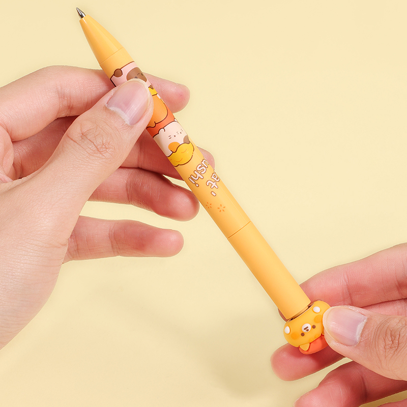 Pena dekompresi ini mengintegrasikan sistem bantalan presisi di bawah ornamen cetakan tetes 3D di atas laras, memungkinkannya berputar bebas, meniru efek pemintal gelisah. Ini mempertahankan kartrid gel-ink 0,5 mm yang tepercaya untuk penulisan yang halus. Diproduksi menggunakan jalur pencetakan canggih dan kontrol kualitas yang ketat, ia menawarkan fungsionalitas penghilang tegangan taktil dan penulisan. Pena ini ideal untuk hadiah perusahaan yang berorientasi pada kesehatan, alat tulis yang digerakkan oleh produktivitas, atau rangkaian promosi yang bertujuan untuk memperkuat fokus dan ketenangan.