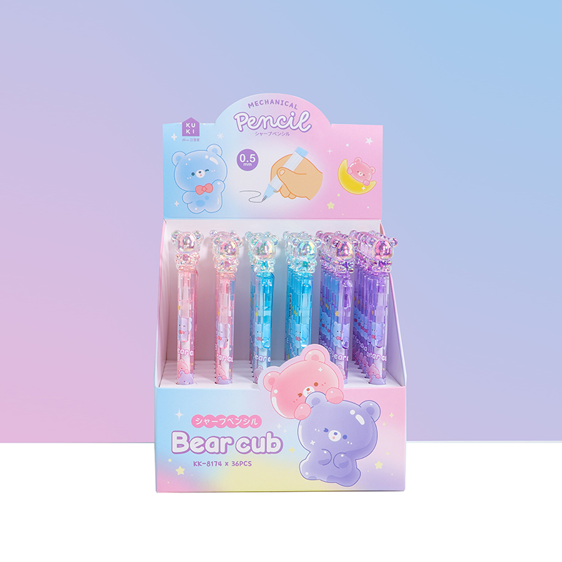 Seri Pensil Mekanik KUKI melayani mereka yang menghargai presisi dan desain. Tersedia dalam ukuran timah 0.5mm dan 0.7mm, pensil ini memiliki pegangan karet yang nyaman dan bodi plastik yang ramping. Fitur yang menonjol adalah desain akrilik 3D di bagian atas, yang menambahkan sentuhan kepribadian dan bakat pada alat tulis. Baik untuk sketsa detail atau tulisan sehari-hari, seri ini menawarkan fungsionalitas dan gaya.